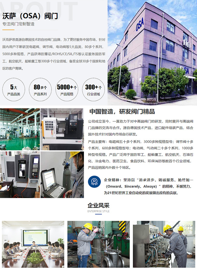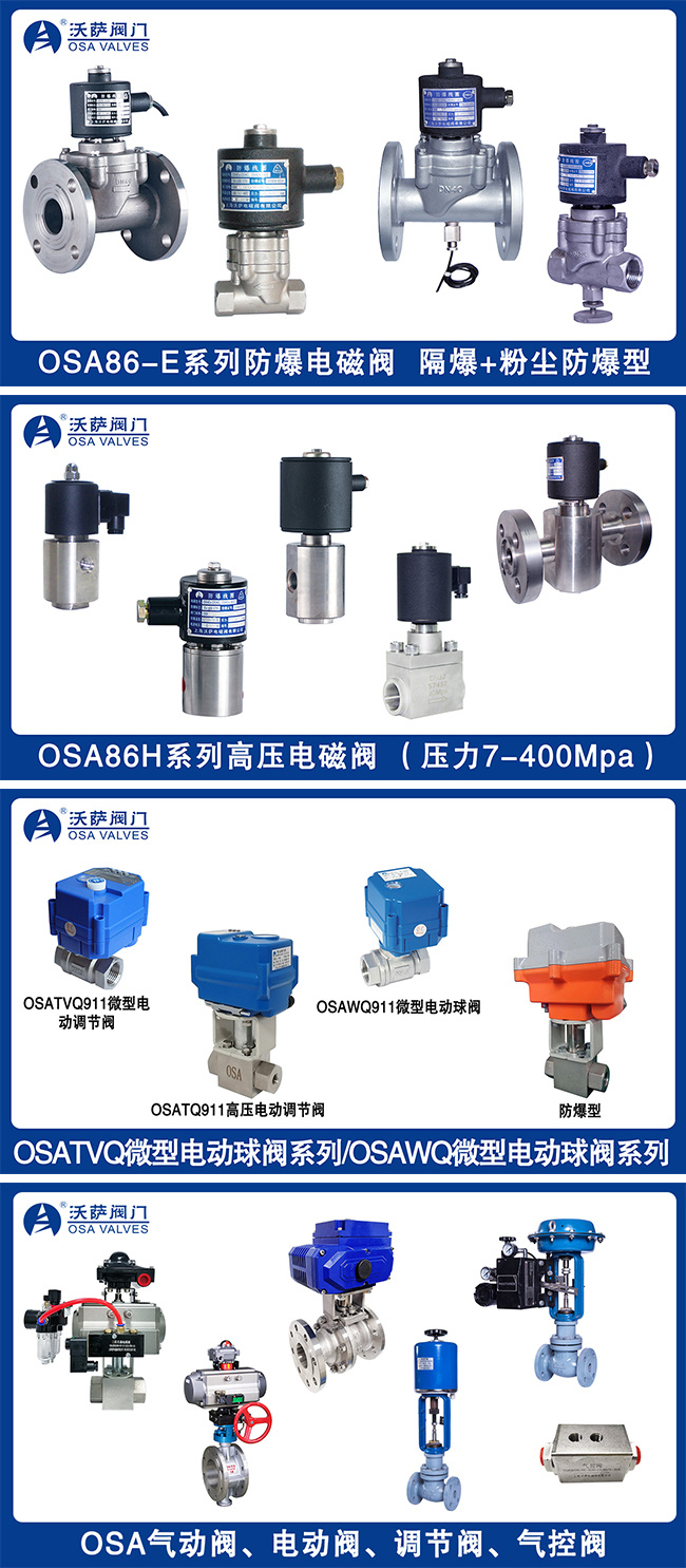 1. 上海沃克萨思自控设备有限公司(OSA沃萨阀门)。http://www.sh-osa.cn/,电话021-69981650/51/52,400-8769928,13501757024